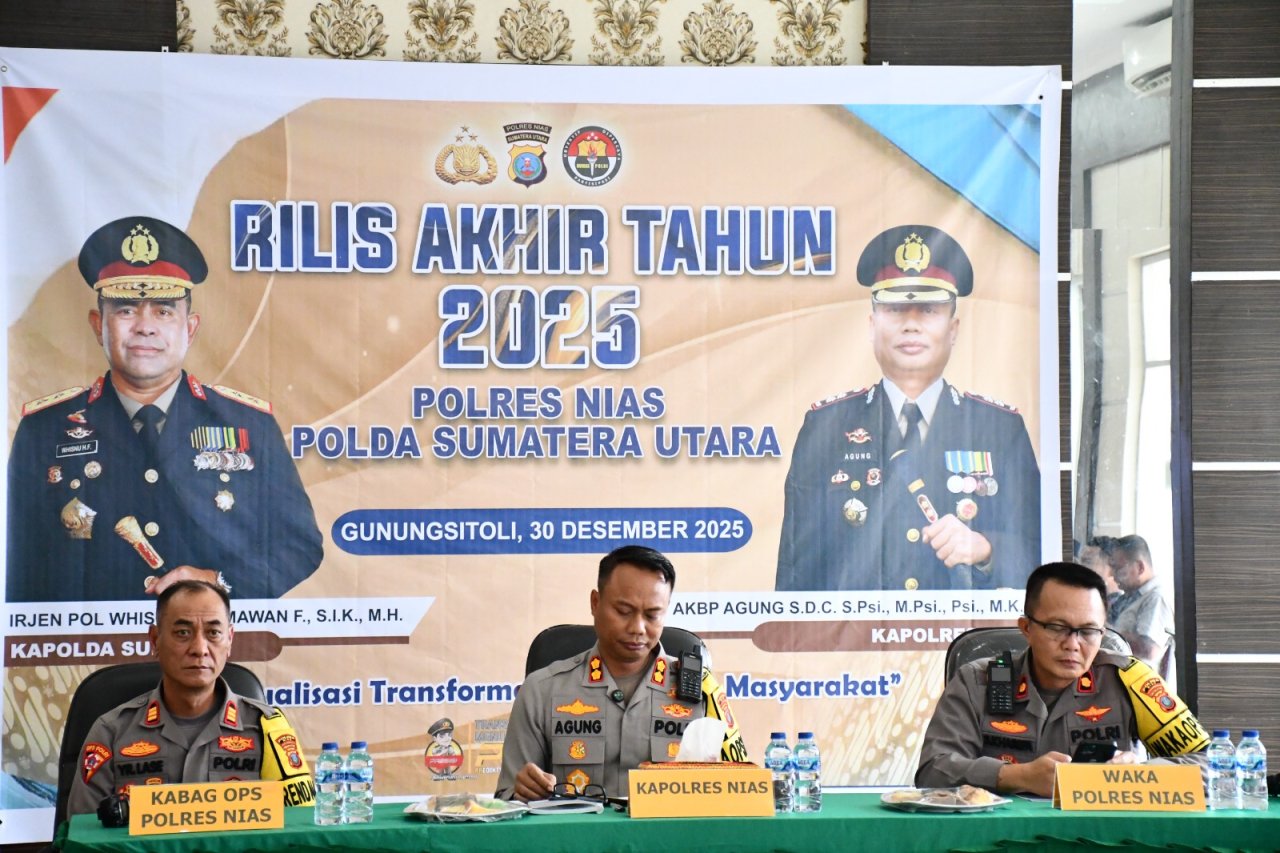 Dalam rilisnya, Kapolres Nias menyampaikan apresiasi kepada seluruh personel Polres Nias dan rekan-rekan media atas dukungan dan sinergi yang telah terjalin sepanjang tahun 2025. Kegiatan rilis akhir tahun ini bertujuan untuk menyampaikan secara terbuka capaian kinerja Polres Nias dalam penanganan berbagai tindak pidana selama periode Januari hingga Desember 2024 dan 2025 sebagai bentuk transparansi dan akuntabilitas kepada masyarakat.