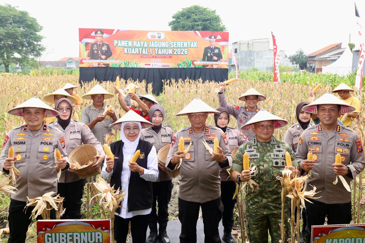 Sidoarjo, bnewsnasional.id - Kepolisian Daerah Jawa Timur menggelar Panen Raya Jagung Serentak Kuartal IV Tahun 2025–2026 sebagai wujud dukungan terhadap program Swasembada Pangan Nasional.