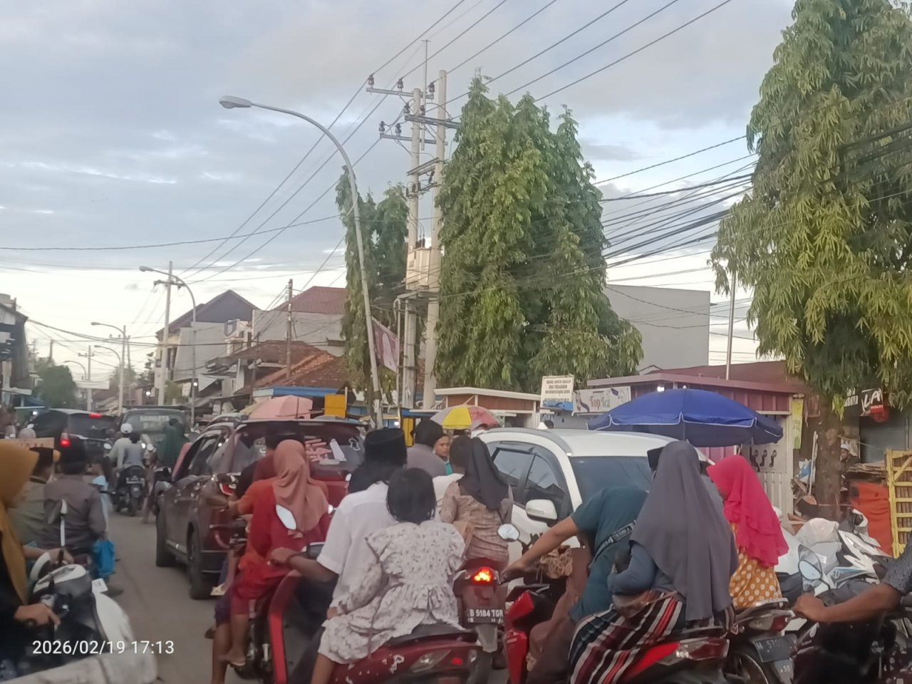 Ramainya warga yang berburu takjil, lauk berbuka, hingga kebutuhan sahur menciptakan suasana hidup dan penuh semangat kebersamaan. Kendaraan yang melintas memang tampak padat, namun hal tersebut menjadi tanda meningkatnya perputaran ekonomi masyarakat di awal bulan suci.