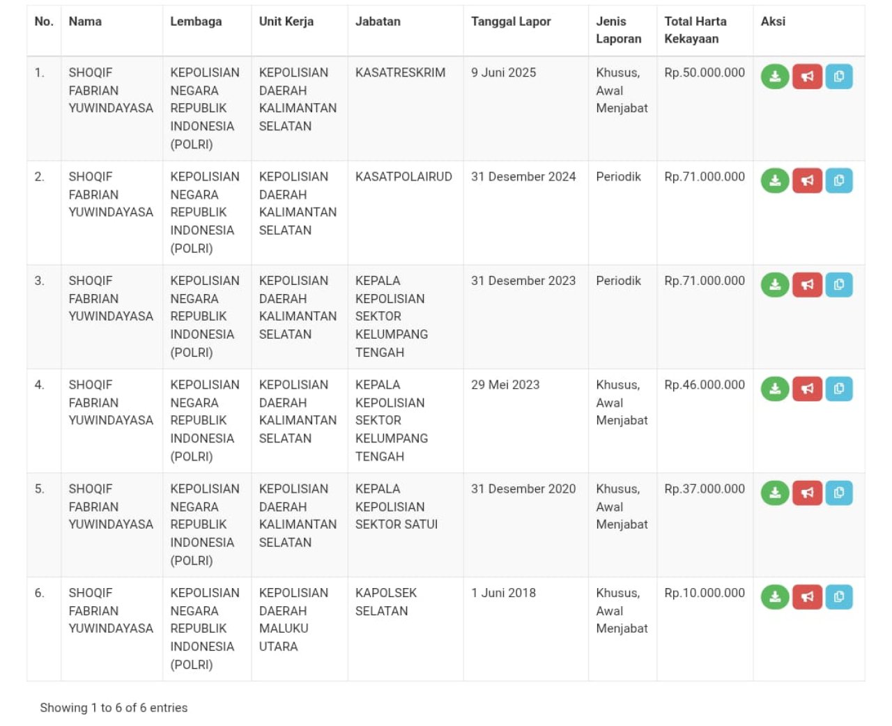 "Hasil telaah terhadap data LHKPN KPK yang ada menunjukkan adanya ketidaksesuaian antara jabatan yang tercatat dengan riwayat tugas yang sebenarnya, terutama terkait transisi jabatan dari Kasat Polairud ke Kasatreskrim. Selain itu, fluktuasi nilai harta yang tidak proporsional – terutama penurunan dari Rp71 juta menjadi Rp50 juta saat menjabat sebagai Kasatreskrim – dinilai membutuhkan klarifikasi mendalam," ujar Hafidz Halim, S.H.
