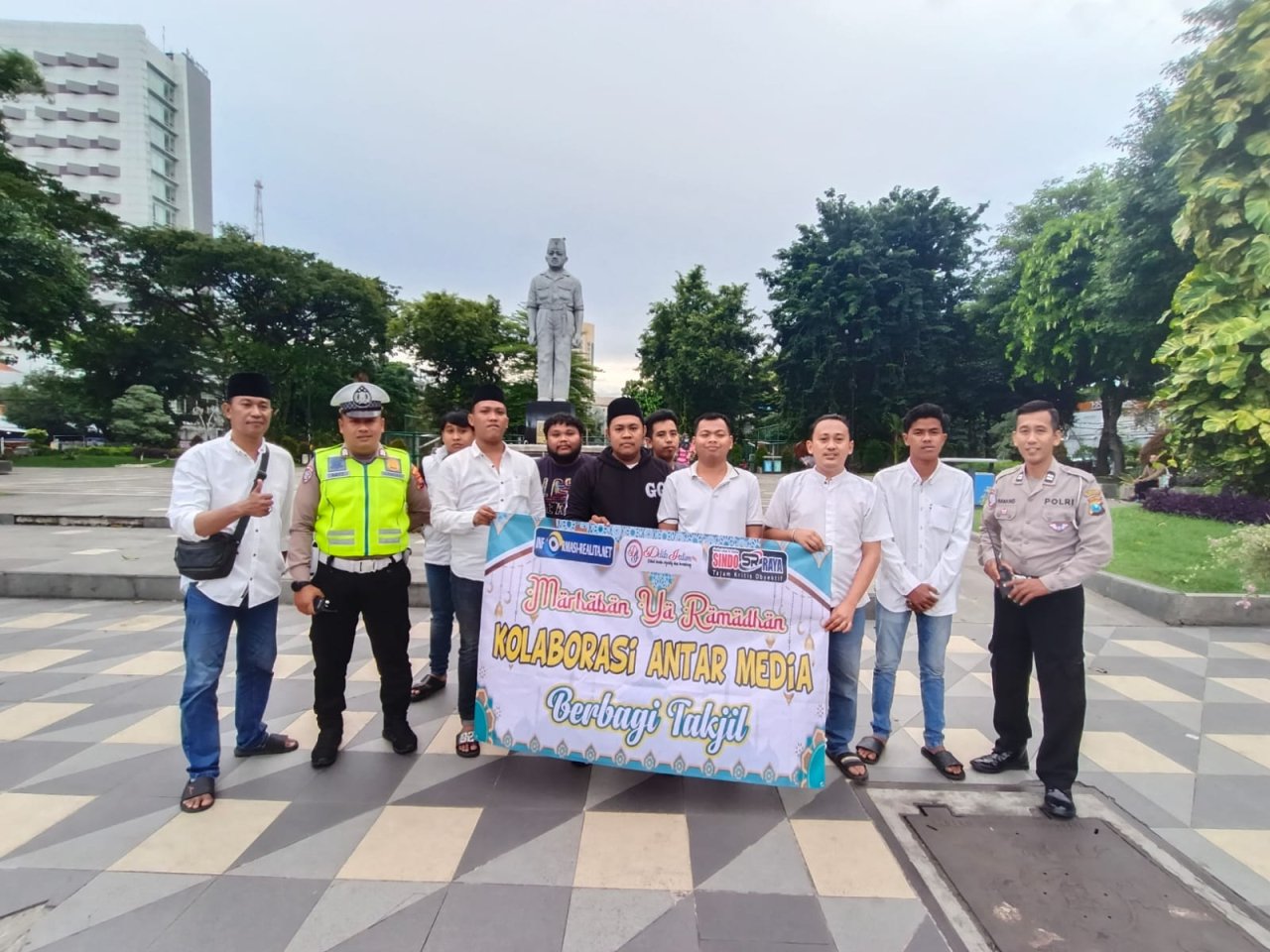 Surabaya, BnewsNasional.id – Semangat berbagi di bulan suci Ramadan kembali ditunjukkan oleh insan pers melalui kegiatan sosial pembagian takjil kepada masyarakat. Tiga media online, Informasi-Realita.net, Sindoraya.com, dan Delikjatim.com berkolaborasi menggelar aksi berbagi dengan membagikan ratusan paket takjil di kawasan Taman Apsari, Surabaya.