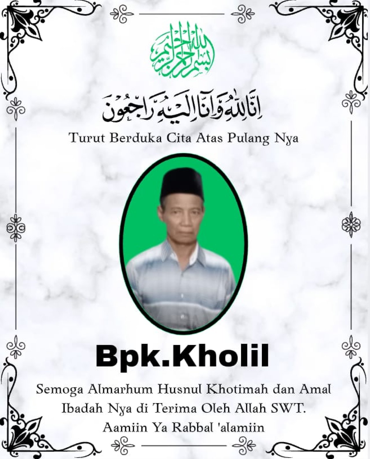Surabaya, BnewsNasional.id – Innalillaahi Wainnailaihi Rojiun, Berita Duka telah berpulang ke rahmatullah, Kholil Ayahanda/Orangtua Taufik Jurnalis Media Tabir Lentera Nusantara.