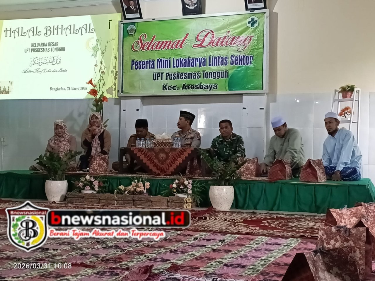 Bangkalan, bnewsnasional.id — UPT Puskesmas Tongguh Kecamatan Arosbaya menggelar kegiatan Mini Lokakarya Lintas Sektor yang dirangkaikan dengan Halal Bihalal di aula puskesmas setempat, Selasa (31/3/2026). Kegiatan berlangsung khidmat, penuh kehangatan, sekaligus menjadi forum strategis dalam memperkuat koordinasi lintas sektor guna meningkatkan kualitas pelayanan kesehatan masyarakat.