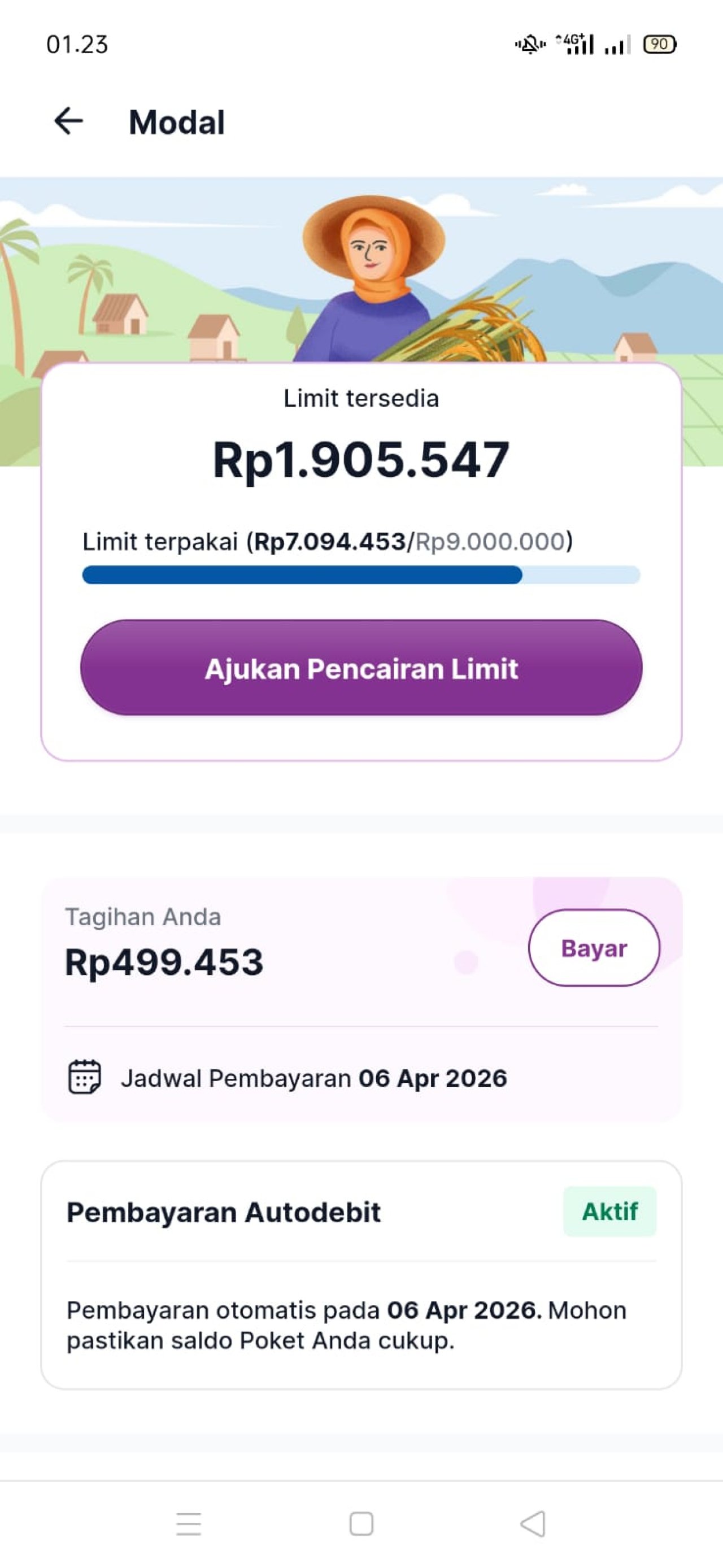 Dalam aplikasi, tercatat tagihan sebesar Rp499.453 yang disebut sebagai tunggakan dan telah jatuh tempo pada 6 April 2026. Padahal, nasabah mengaku rutin melakukan pembayaran setiap minggu, tepatnya setiap hari Senin, dengan menitipkan kepada petugas lapangan.