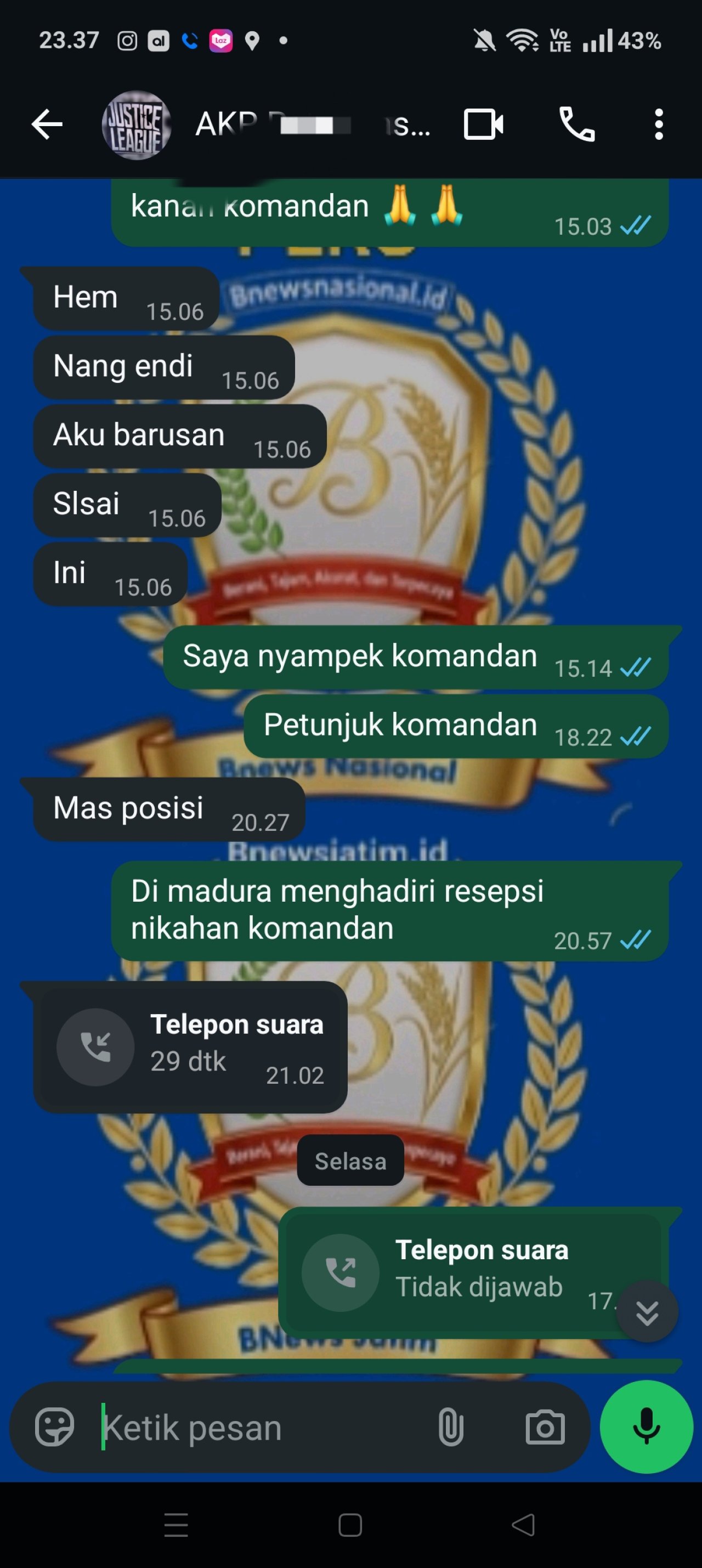 Setelah keesok harinya awak media datang ke polres tanjung perak sekiranya pukul 10.30 siang dan langsung menghubungi kasatnarkoba melalui WhatsApp dan beliau menjawab oke tunggu saya berangkat mas dan kami menunggu lama sampai sore hari terpaksa kami balik kanan pulang begitu nyampek rumah kasatnarkoba mengirim pesan singkat melalui WhatsApp.