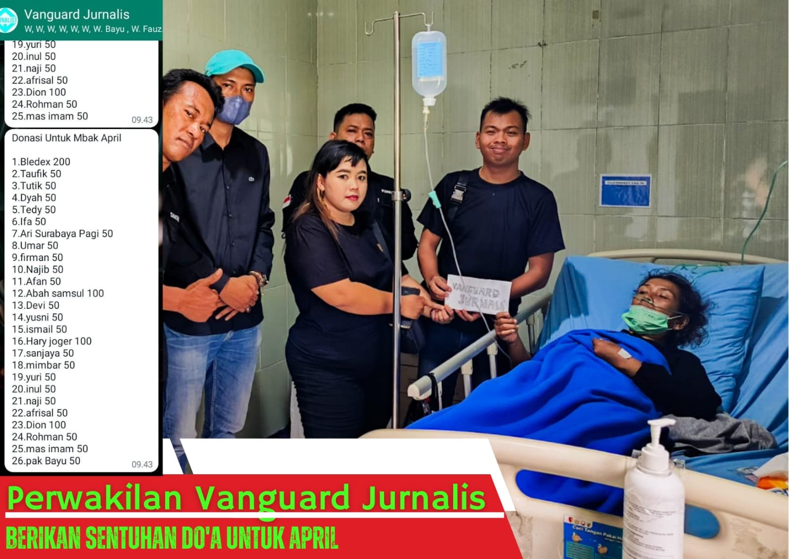 Seperti yang diketahui, dana yang terkumpul melalui teman teman dikumpulkan ke Devi Oktavia, hingga mencapai sebesar Rp 1.550,000 ini merupakan berkat kekompakan dari rekan rekan WAG Vanguard yang rela menyisihkan sedikit uangnya untuk membantu meringankan beban April selama dirawat.