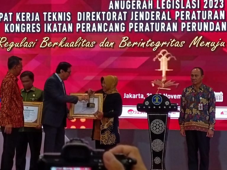 Ditjen PP menyelenggarakan kegiatan Anugerah Legislasi Tahun 2023 untuk memberikan apresiasi kepada 18 institusi daerah baik Kantor Wilayah Kementerian Hukum dan HAM, Pemerintah Daerah Provinsi dan Kabupaten/Kota, serta DPRD Provinsi dan Kabupaten/Kota dalam melaksanakan kegiatan pengharmonisasian, pembulatan, dan pemantapan konsepsi Rancangan Peraturan Daerah dan Rancangan Peraturan Kepala Daerah yang telah menghasilkan peraturan yang berkualitas dan berintegtitas.