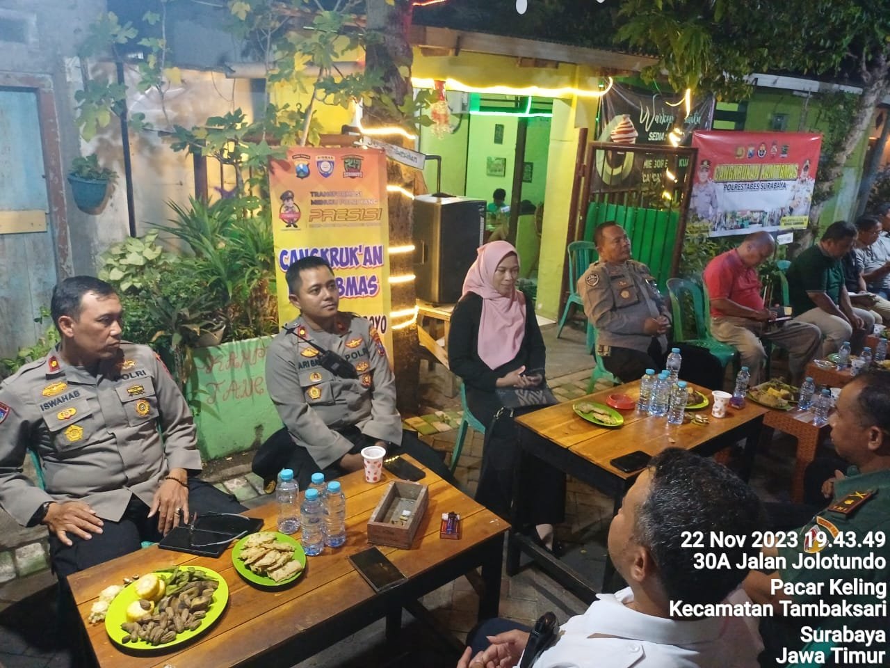 Surabaya - (Berita News Nasional) -Polrestabes Surabaya bersama Polsek Tambaksari menggelar acara cangkrukan Kamtibmas bersama warga di Jl. Pacarkeling 5 Surabaya, Rabu (22/11/2023) malam