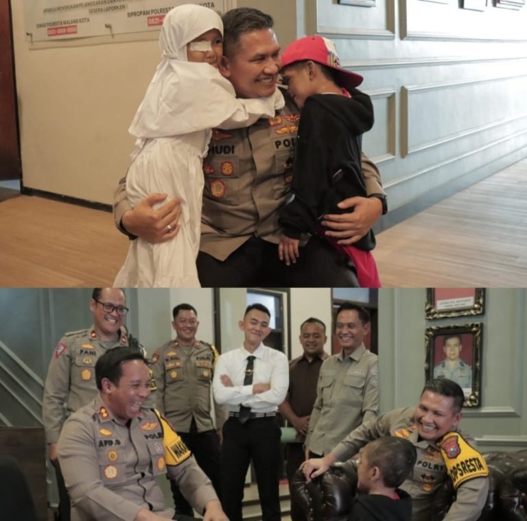 DN yang juga memiliki cita-cita ingin jadi Polisi, berkunjung ke Polresta Malang Kota didampingi Ketua Yayasan Bersama Anak Bangsa Yuning Kartikasari (Bu Yuyun) dan beberapa anak-anak penyandang disabilitas.