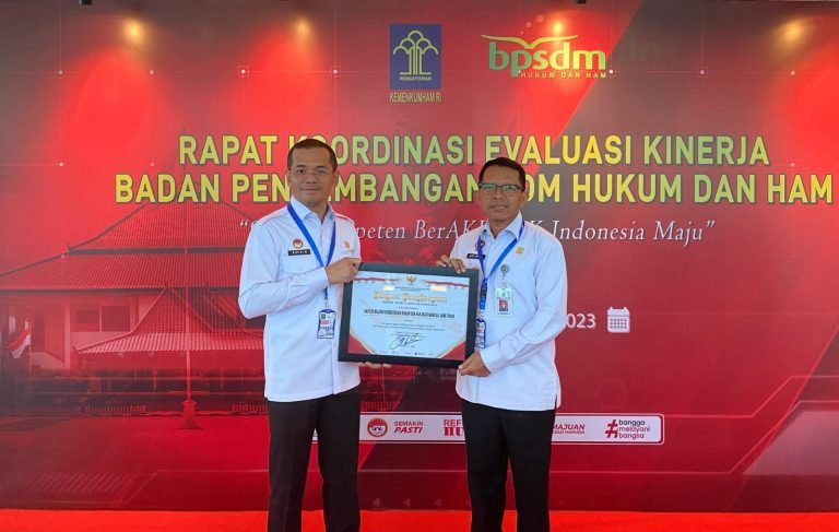 Penghargaan itu diserahkan langsung oleh Menkumham Yasonna H Laoly kepada Kakanwil Heni Yuwono hari ini (27/11). Tepatnya saat kegiatan Rapat Koordinasi Evaluasi Capaian Kinerja Tahun 2023 dan Penyusunan Target Kinerja Tahun 2024 BPSDM Hukum dan HAM di JS Luwansa Hotel, Jakarta.