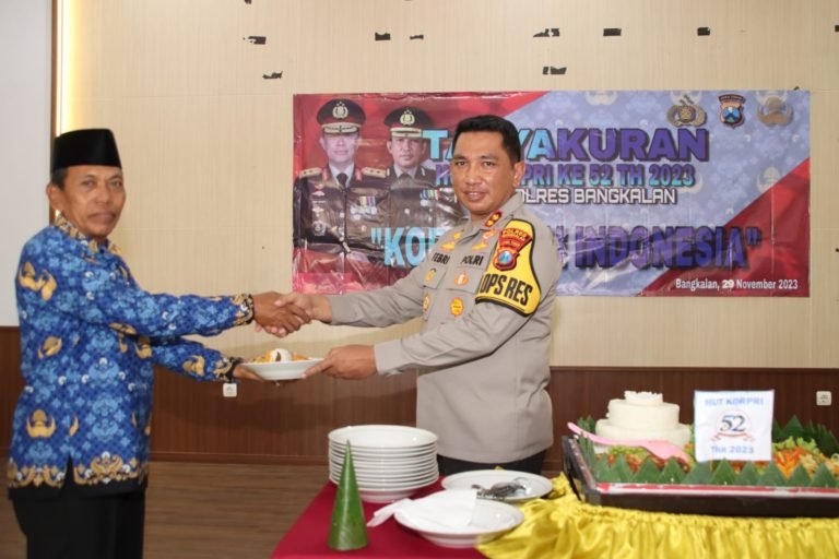 Bangkalan - (Beritanewsnasional.com) - Puncak di Hut Korpri ke-52 tahun 2023 hari ini digelar dengan Tasyakuran bertemakan “KORPRIKAN INDONESIA” yang dikemas dengan sederhana di Aula Wicaksana Laghawa Polres Bangkalan. (Rabu, 29/11/2023)