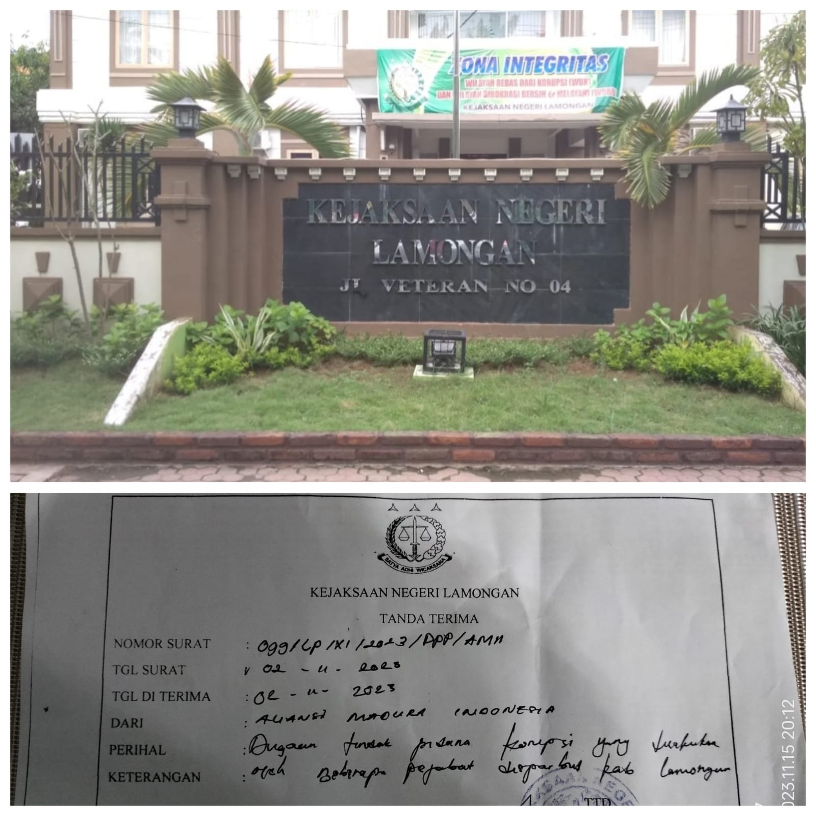 Padahal kami sebagai pelapor sudah memberikan bukti akurat terkait dugaan tindak pidana kasus korupsi tersebut, tapi sampai detik ini kami sebagai pelapor belum pernah menerima surat secara resmi dari kejaksaan negeri Lamongan terkait perkembangan kasus tersebut.