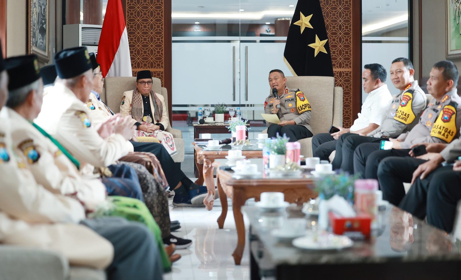 Hal itu disampaikan oleh Kapolda Jawa Timur, Irjen Pol Drs.Imam Sugianto didampingi beberapa Pejabat Utama Polda Jatim saat menerima kunjungan para Da’i Kamtibmas di selasar Gedung Patuh Mapolda Jatim, pada Senin (4/12/2023).