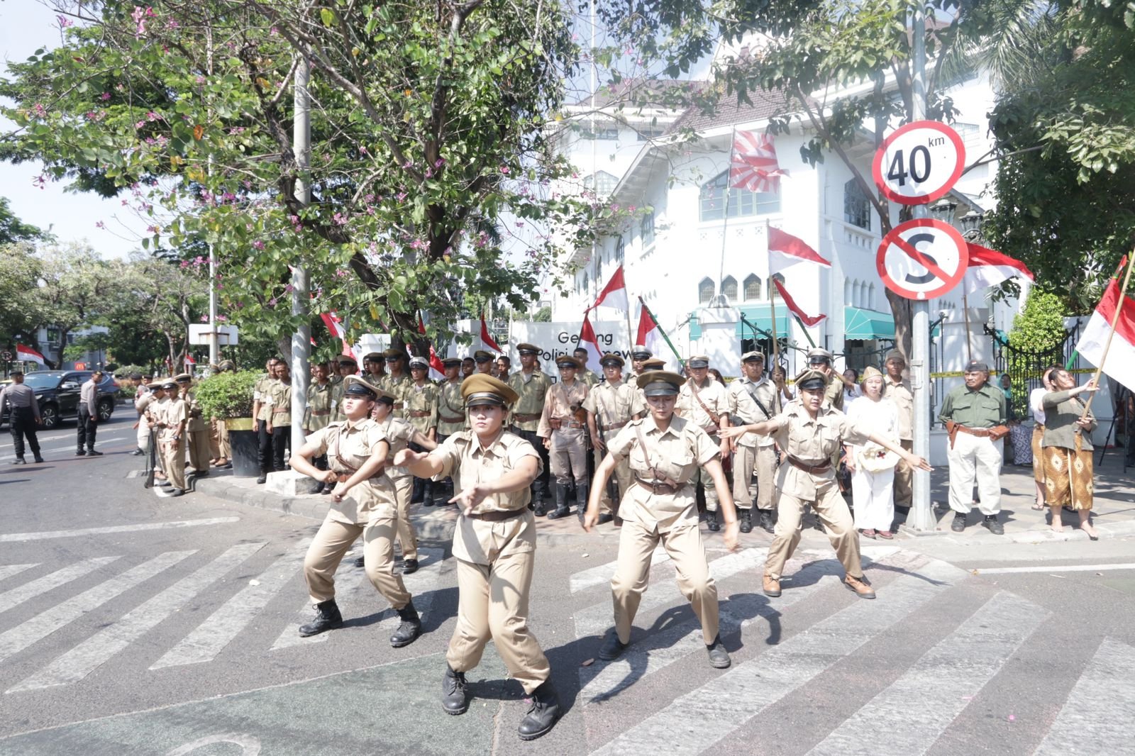 Beritanewsnasional.com || Surabaya - Komunitas pemerhati sejarah Rooderburg dan Surabaya juang menggelar teatrikal Proklamasi Kemerdekaan Polisi Indonesia di Gedung Polisi Istimewa Surabaya, Senin (21/8).