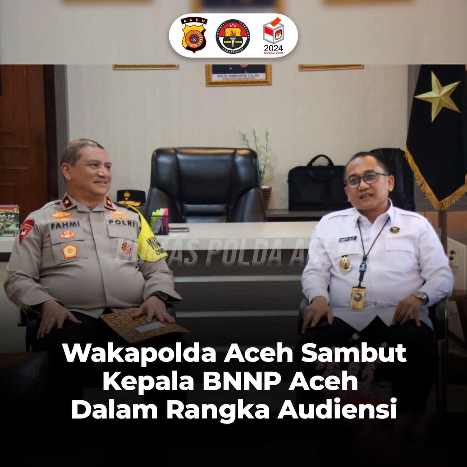 Audiensi antara Kepala BNNP Aceh dengan Wakapolda Aceh berlangsung akrab dan menjadi ajang silaturahmi serta membahas sejumlah agenda diantaranya terkait upaya mencegah dan memberantas peredaran narkoba di Provinsi Aceh.