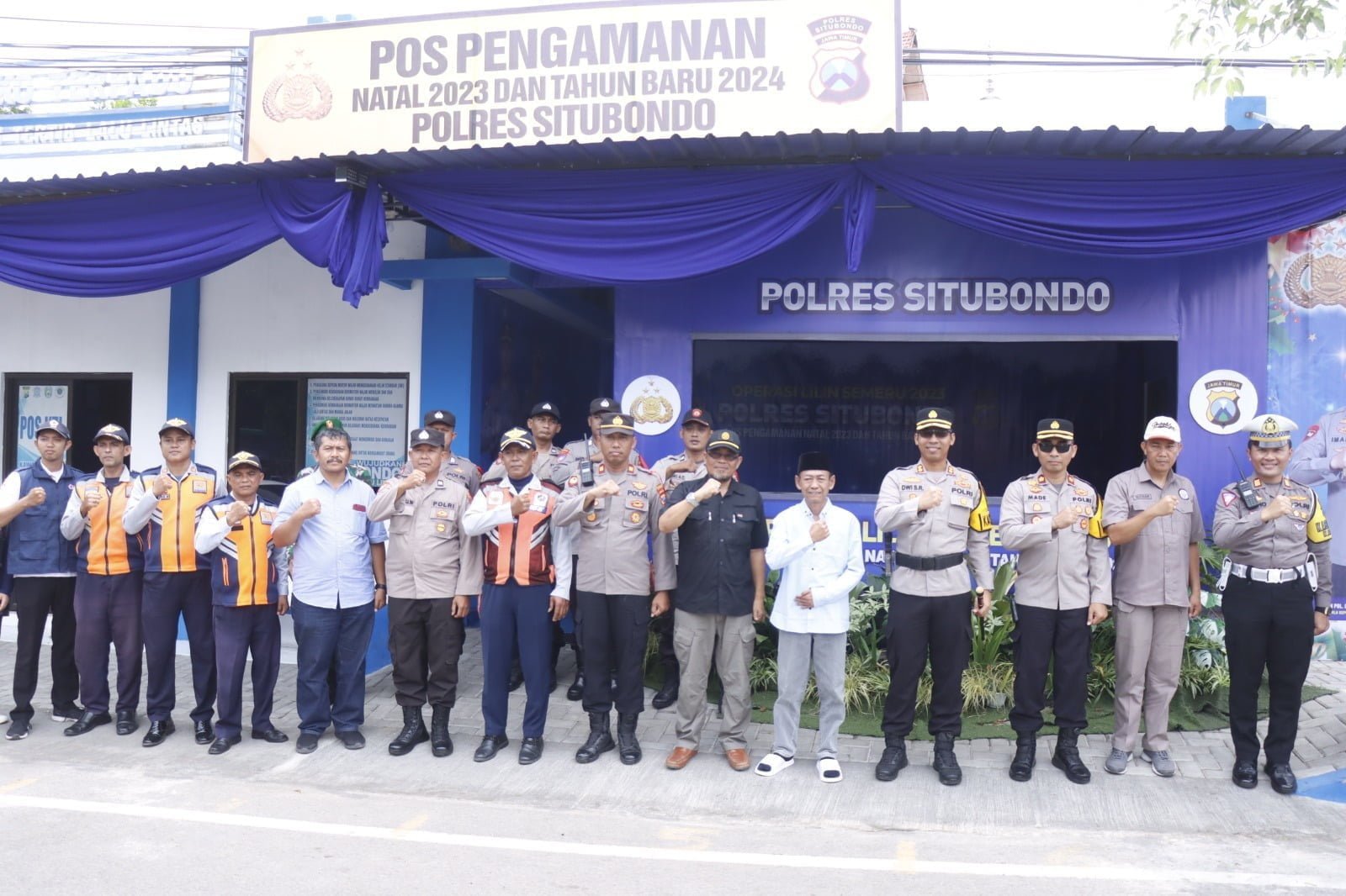 Rombongan Forkopimda yang meninjau pos diantaranya Bupati Situbondo Drs. H. Karna Suswandi, M.M, Kapolres Situbondo AKBP Dwi Sumrahadi Rakhmanto, S.H., S.I.K., M.H, Ketua Pengadilan Negeri Achmad Rasjid, S.H.