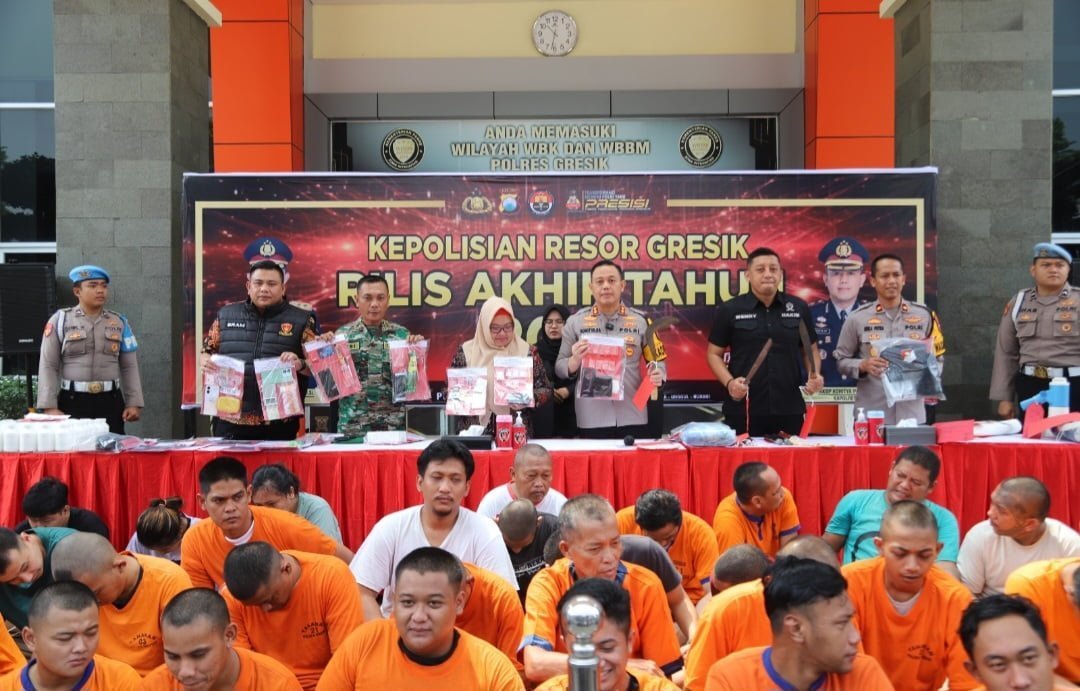 Kapolres Gresik AKBP Adhitya Panji Anom menuturkan berhasil mengungkap sebanyak 140 kasus tindak pidana dengan jumlah tersangka sebanyak 208 orang. Kasus-kasus tersebut meliputi pencurian, curas, curanmor, pengeroyokan, pembunuhan, pencabulan anak, persetubuhan anak, penganiayaan anak, uang palsu, dan prostitusi.
