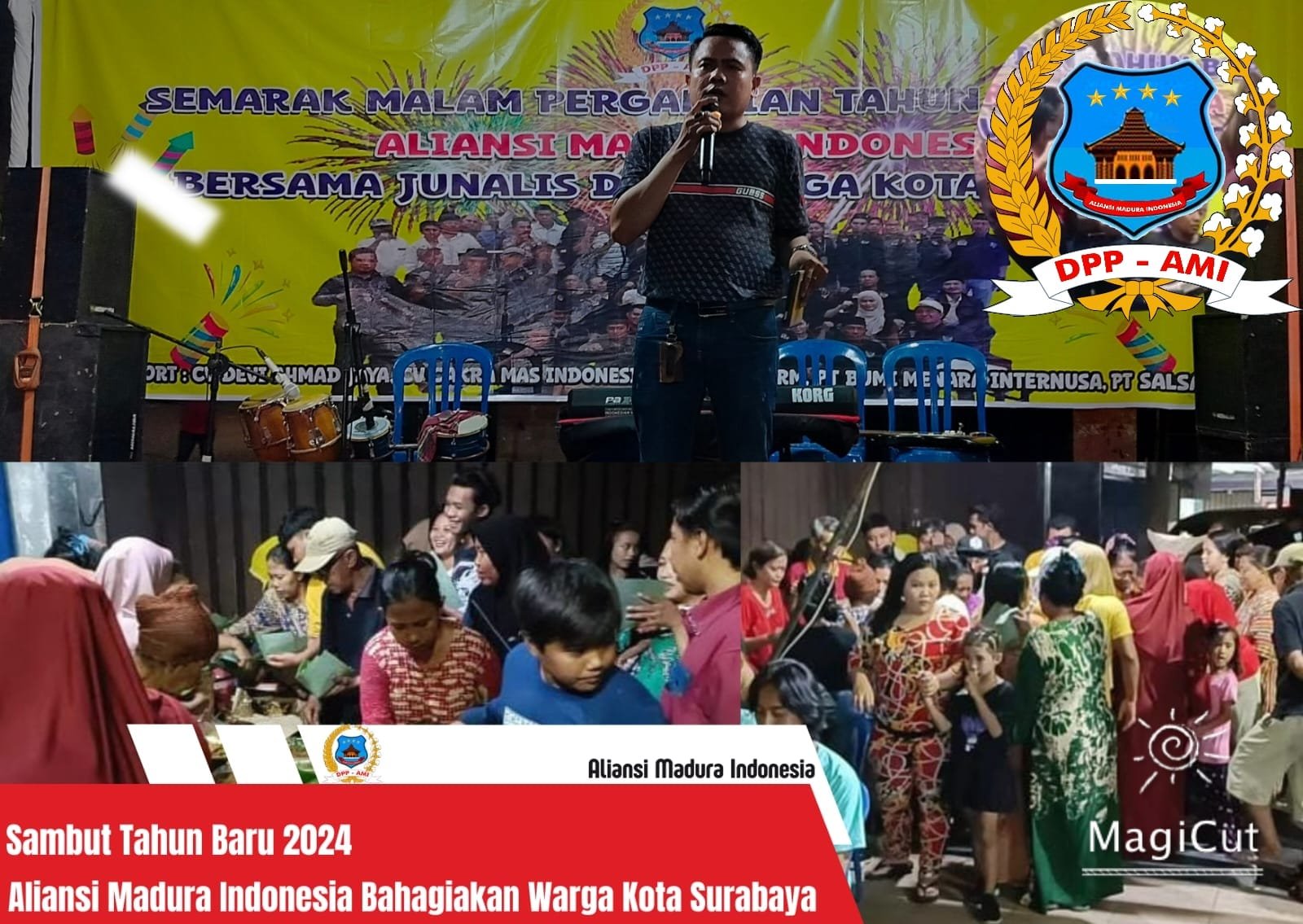 "Kami adalah organisasi yang bergerak di bidang sosial kontrol, dan syukur Alhamdulillah kini AMI sudah semakin menunjukkan eksistensinya baik dalam pemerintahan, pihak swasta, maupun masyarakat, untuk itu menyambut tahun 2024 ini semoga AMI semakin berkibar dan mampu menyikapi seluruh persoalan yang tengah dihadapi masyarakat khususnya dalam bidang korupsi," urai Baihaki dalam sambutannya kepada masyarakat.