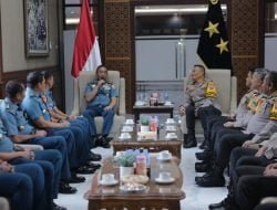 SURABAYA - beritanewsnasional.com - Kapolda Jawa Timur Irjen Pol Drs.Imam Sugianto,M.Si dan Waka Polda Jawa Timur Brigjen Pol Akhmad Yusep Gunawan didampingi Pejabat Utama (PJU) Polda Jatim menerima Courtesy Call Panglima Komando Armada (Pangkoarmada) ll di Selasar Gedung Patuh Mapolda Jatim, Selasa (2/1/24).