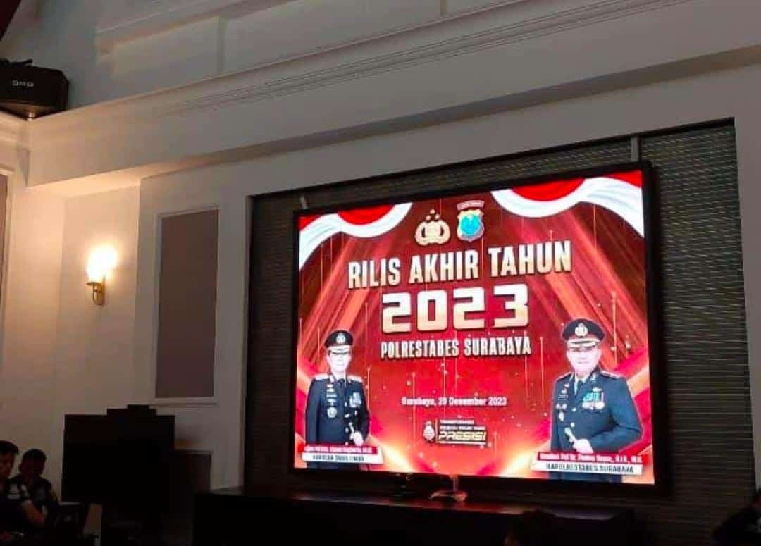 SURABAYA- beritanewsnasional.com - Polrestabes Surabaya mengadakan confrensi pres reales akhir tahun, terkait hasil kinerja Satreskrim, Satresnarkoba dan Satlantas telah mengungkapkan kasus tahun 2023. Pada hari Jum'at 29 Desember 2023 sekira jam 13.00 WIB bertempat di gedung Mahameru.