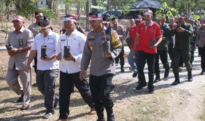 Polres Nganjuk Bersama Forkopimda Tanam Pohon Sebagai Rangkaian Peringatan Hari Kemerdekaan RI ke 78