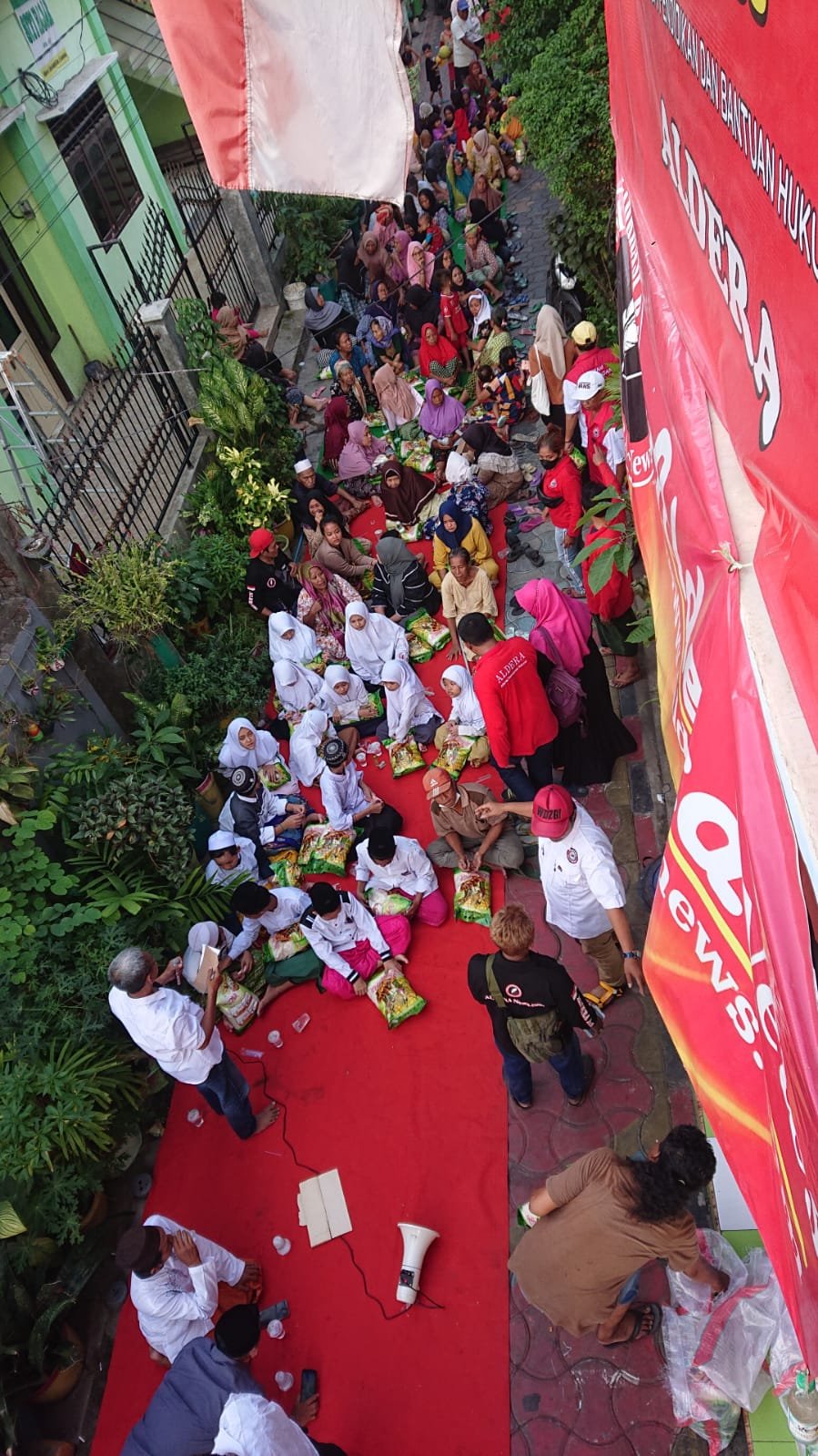 Untuk kegiatan bhakti sosial kali ini dilakukan langsung di depan kantor sekretariat Ormas Aldera, kegiatan ini diikuti seluruh keluarga besar Ormas dan donatur.