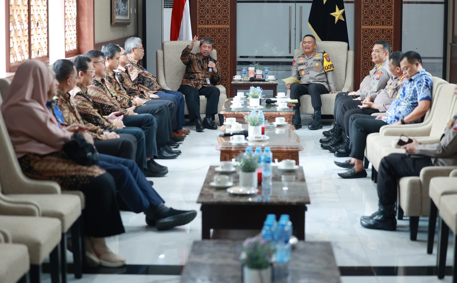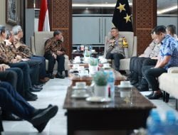 Kapolda Jawa Timur Irjen Pol Drs. Imam Sugianto,M.Si bersama Pejabat Utama (PJU) Polda Jatim, menerima audensi dari Kepala Perwakilan Kementerian Keuangan tersebut di Selasar Gedung Patuh Mapolda Jatim.