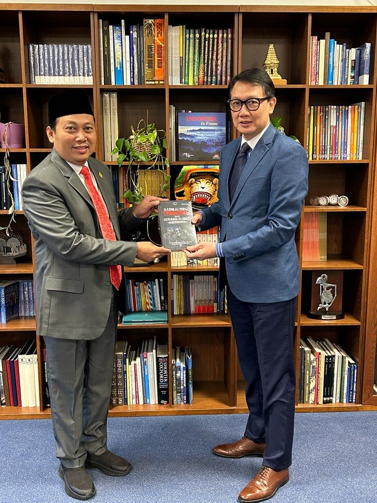 Buku itu diserahkan oleh Anggota Kompolnas RI H. Mohammad Dawam, sekaligus dalam rangkaian kunjungan kerjanya ke beberapa negara dalam rangka memastikan pelaksanaan Pemilu untuk WNI di luar negeri berjalan aman dan lancar.