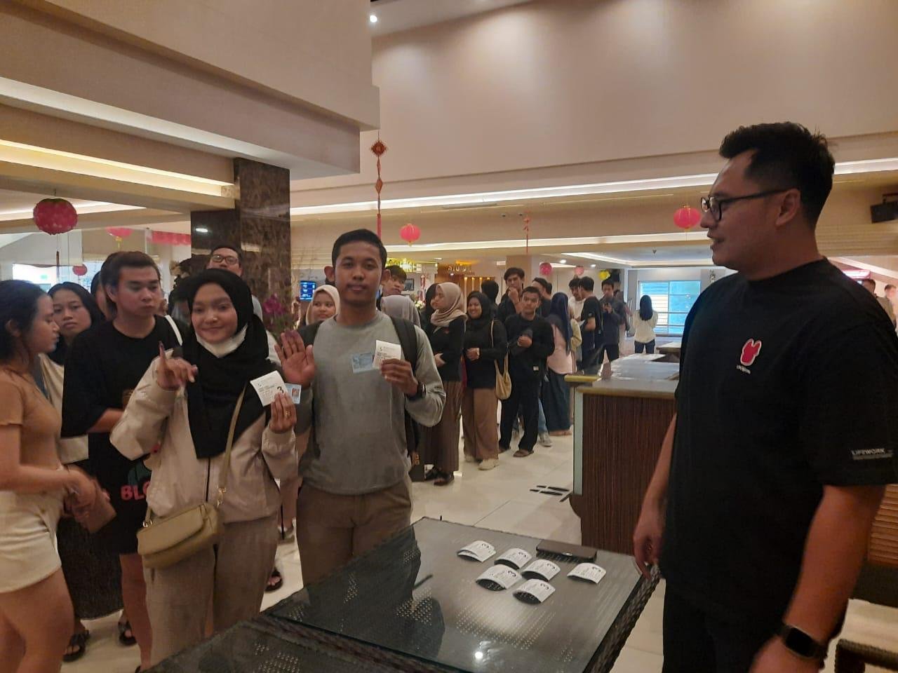 Muda mudi yang juga merayakan hari valentine pun juga turut bersuka cita dengan adanya nonton gratis yang disiapkan Polresta Malang Kota bersama Movimax Sarinah.