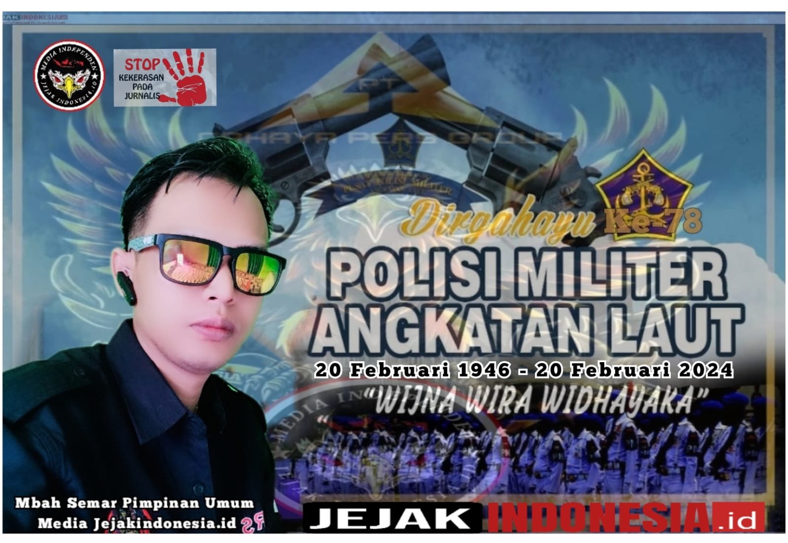 Selamet Solichin yang biasa akrab disapa Mbah Semar selaku Pimpinan Media Jejakindonesia.id mengucapkan Hari Ulang Tahun (HUT) Polisi Militer TNI Angkatan Laut (POMAL) ke 78 tahun 2024 yang jatuh pada tanggal 20 Februari 2024.