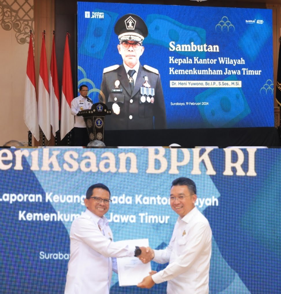 SURABAYA, Beritanewsnasional.com -Jajaran Kanwil Kemenkumham Jatim kembali menjadi salah satu sampling dalam rangka pemeriksaan atas laporan keuangan Kemenkumham oleh Badan Pemeriksa Keuangan (BPK) untuk tahun anggaran 2023. Kakanwil Kemenkumham Jatim Heni Yuwono menegaskan bahwa jajarannya menekankan akuntabilitas kinerja untuk menyumbangkan nilai positif bagi Kemenkumham.