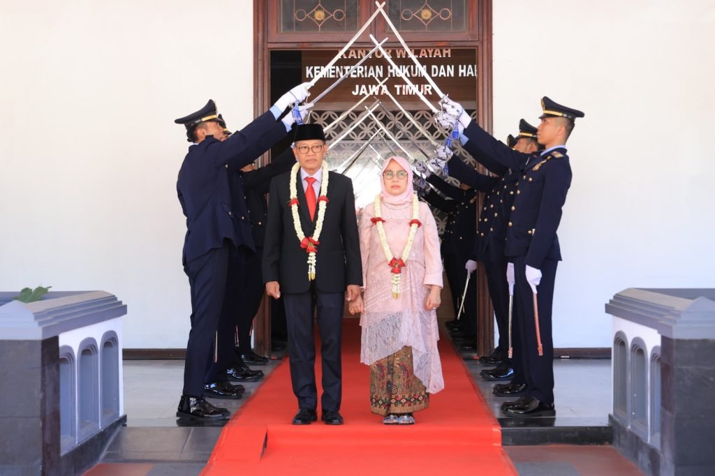 Upacara serah terima jabatan digelar pada Kamis (31/08) di ruang Raden Wijaya dan dipimpin oleh Kepala Badan Strategi Kebijakan Hukum dan HAM RI Y Ambeg Paramarta. Hadir pula dalam kegiatan tersebut Staf Khusus Pengamanan dan Intelijen Krismono, sesepuh Pengayoman serta Ka UPT di jajaran Kanwil Jatim.