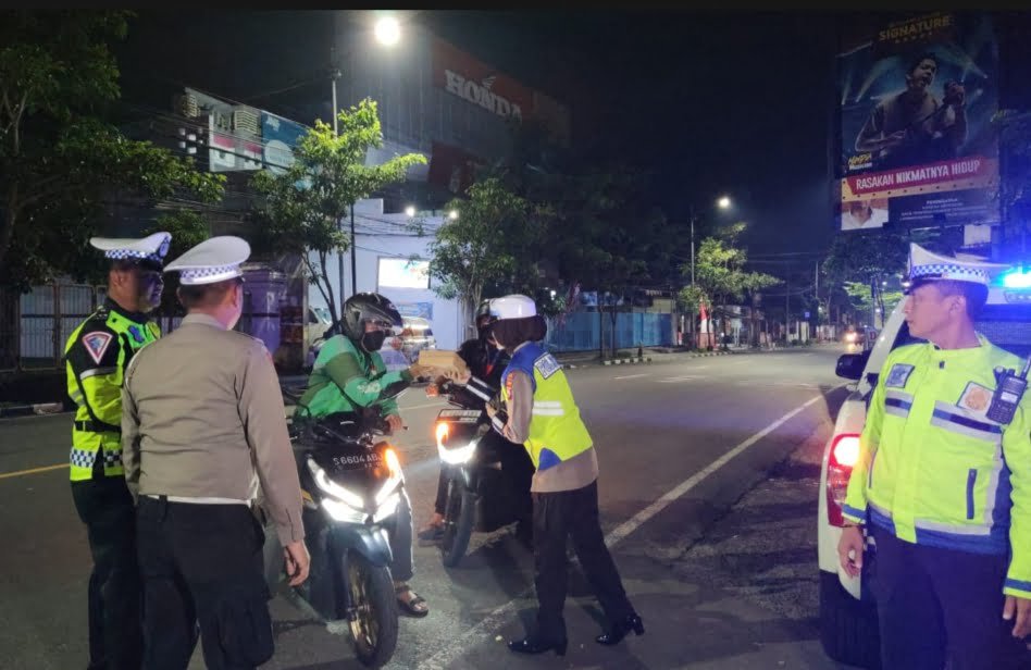 “Personel Satlantas melaksanakan patroli pada jam rawan gangguan Kamtibmas sekaligus membagikan nasi kotak untuk makan sahur kepada warga yang membutuhkan,” ucap Ipda Septian.