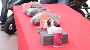 Barang bukti yang diamankan satu buah sepeda motor Honda PCX, dua unit Handphone, satu buah gunting, sarung Warna Hijau, selembar kertas bertulisan.